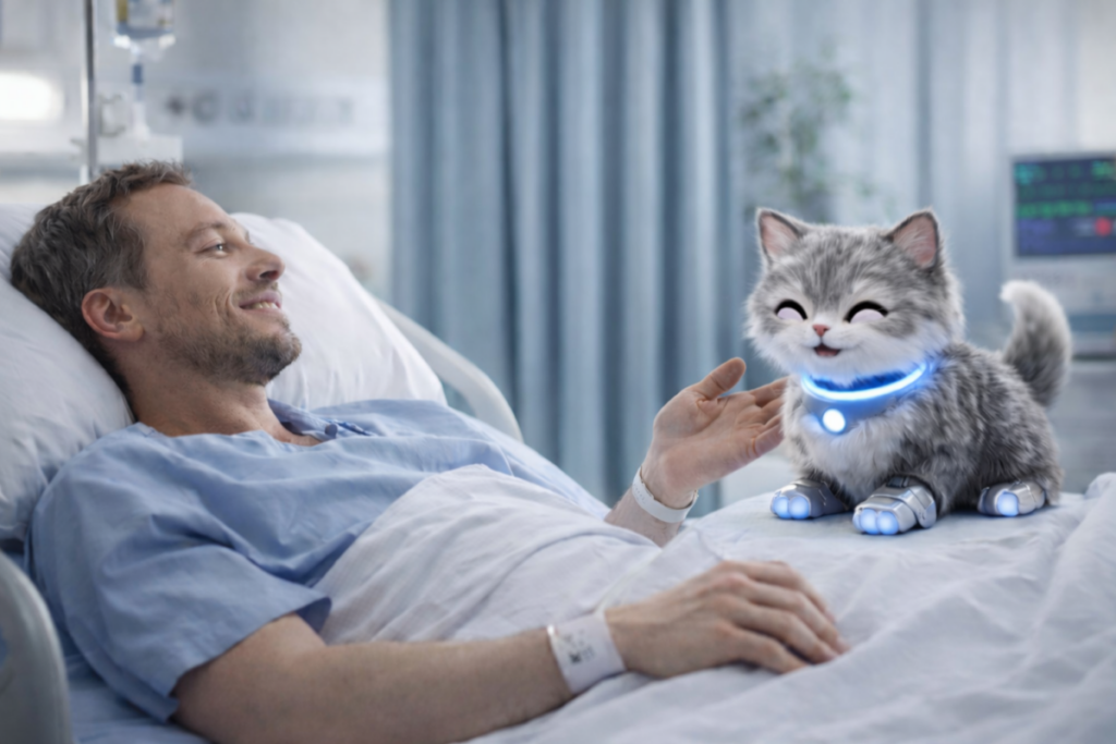 Care-focused companion robots are used in medical and nursing environments. These robots appear in various forms including pet-shaped, doll-shaped and humanoid designs. They provide functions such as medication reminders, fall detection, simple conversation, music and play and family video call support. A 2025 meta-analysis published in the Journal of Medical Internet Research reported that intelligent robot interventions significantly reduced agitation and anxiety in patients with dementia. The study noted that while improvements in cognition and quality of life were limited, emotional stabilization became more evident when interventions lasted longer than twelve weeks.