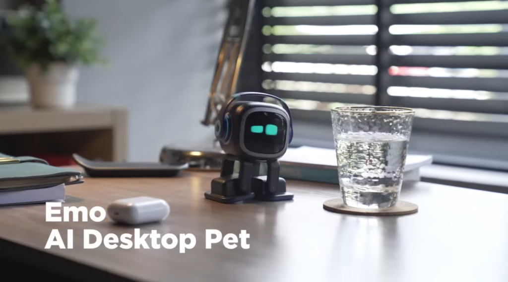 Desktop AI companions are designed for desks and indoor spaces. Robots such as Loona and EMO combine expressive displays with mobility, allowing them to make eye contact and respond with sound and movement. EMO in particular offers a wide range of expressions, music and dance modes and smart lighting control, making it suitable both as a playmate for children and as a desk companion for adults.